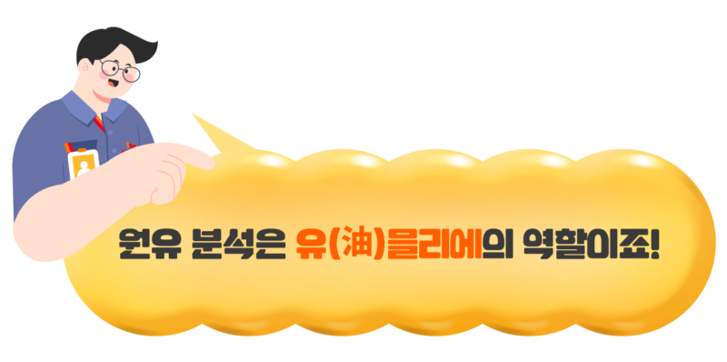 원유는 같은 생산지에서 채굴하더라도 성상(性狀)의 차이를 보인다. 원유에는 탄소와 수소, 기타 원소는 물론, 그 외에도 황화합물, 질소화합물, 산소화합물, 금속염류 등의 불순물 등이 섞여있다. 불순물 제거는 석유제품의 품질을 결정하는 주요한 요소 중 하나이기 때문에 원유 성분 분석과 그 결과에 맞춘 공정 과정이 필요하다. 이러한 복잡한 작업의 최선단에 선 주인공이 바로 ‘유믈리에’다.
