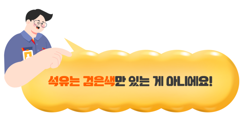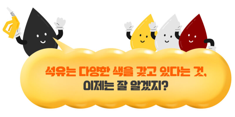 석유가 모두 검은색이라는 오해는 땅 속에서 뽑아낸 ‘원유(Crude Oil)’로 인해 생겨났어요. 갓 채굴한 원유는 점도가 높아 끈적한 액체 상태이며, 주로 흑갈색이나 암녹색을 띠어요. 이렇게 캐낸 원유는 분별증류(分別蒸溜) 등의 정제 과정을 거쳐 무색 투명한 액체가 되기도 하고, 노란색이나 초록색 등을 띠기도 한답니다.