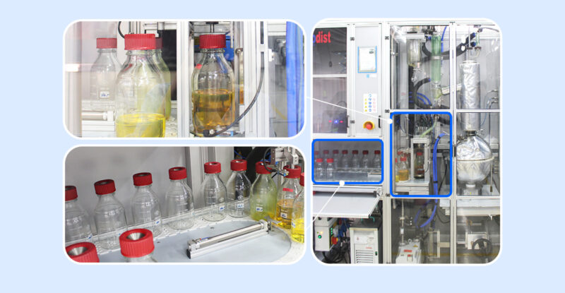 유믈리에의 원유분석 업무에 가장 핵심적인 설비는 바로 원유분석실의 ‘파일럿 플랜트(Pilot Plant)’다. 특수유리로 만들어진 파일럿 플랜트는 울산CLX의 정제시설인 CDU(Crude Distillation Unit, 상압증류탑)의 축소판으로 다양한 원유를 투입한 후 실제 정제 과정과 똑같이 테스트해 분석 결과를 얻는다.