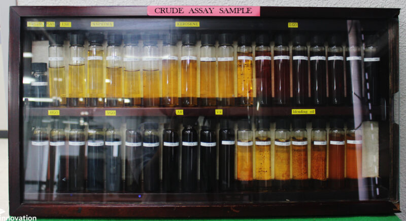 파일럿 플랜트 분석을 통해 얻은 중요한 자료를 ‘크루드 어쎄이(Crude Assay)’라고 해요. 크루드 어쎄이는 원유와 원유의 증류를 통해 얻은 제품의 수율 및 성상을 모두 모아둔 자료입니다. 이 자료를 활용해 원유의 배합 비율을 조정하고 공장의 운전 조건을 설정하는 등 최종 석유제품 생산을 위한 가이드를 만든답니다.