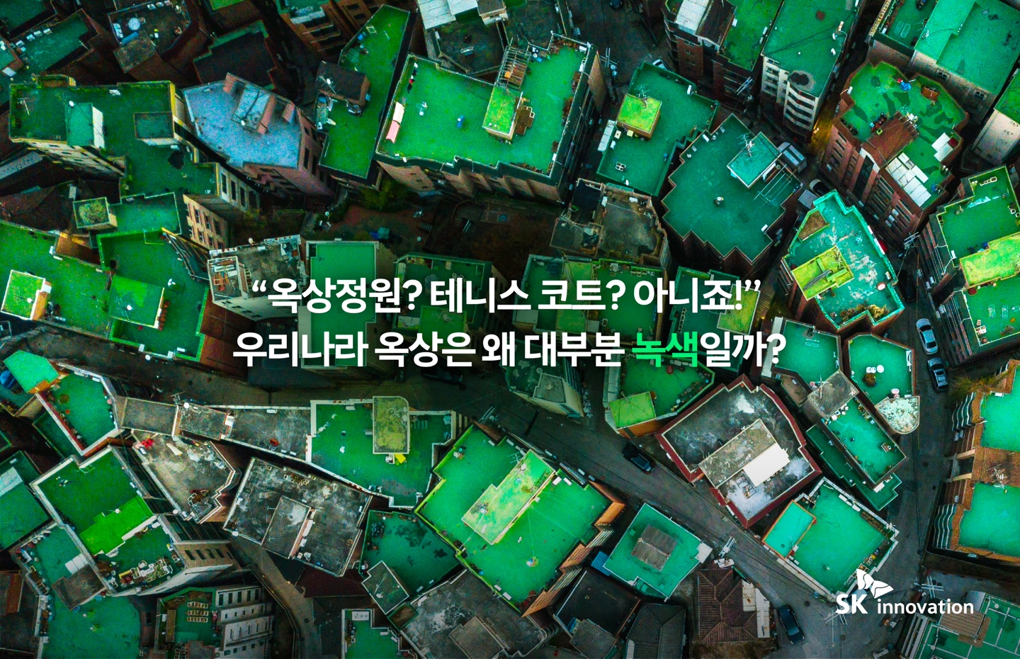 왜 우리나라 옥상은 대부분 초록빛일까? 초록색으로 가득한 우리나라 옥상의 비밀은 바로 페인트에 있다. 기온 변화에 의해 건축물은 수축, 팽창을 반복하며 이에 따른 균열이 발생한다. 이는 누수나 부식, 곰팡이 발생 등의 원인이 될 수 있기에, 특히 건물 외부에 위치한 옥상은 이를 막기 위한 방수 시공이 필수적이다. 이때 쓰이는 방수 페인트는 석유에서 추출한 폴리우레탄(Polyurethane)을 원료로 한다.