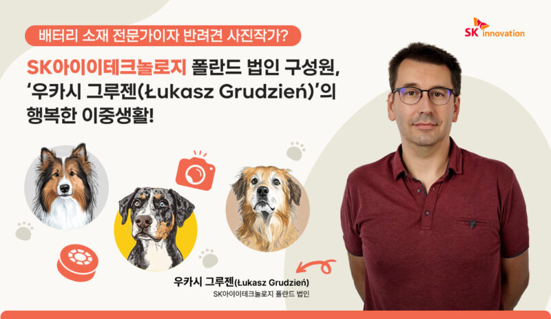 SK이노베이션 계열은 일과 삶의 균형(Work and Life Balance, 이하 워라밸)이 ‘개인의 행복’과 ‘일적 성공’ 모두를 이끈다고 믿는다. 글로벌 탑 티어(Top-tier) 소재 솔루션 기업인 SK아이이테크놀로지의 폴란드 법인(SK hi-tech battery materials Poland, 이하 SKBMP)에는 각 분야의 뛰어난 전문가이자, 다채로운 취미와 관심사를 가진 열정적인 구성원들이 함께한다. 기술적 전문성과 예술적 재능을 겸비한 CCS* 생산 부서의 교대근무(Shift) 책임자, 우카시 그루젠(Łukasz Grudzień)도 SKBMP의 일원이다. ‘본캐’는 배터리 소재 전문가, ‘부캐’는 반려견 사진작가로 활동하며 워라밸을 만끽하는 그의 얘기를 들어본다.
