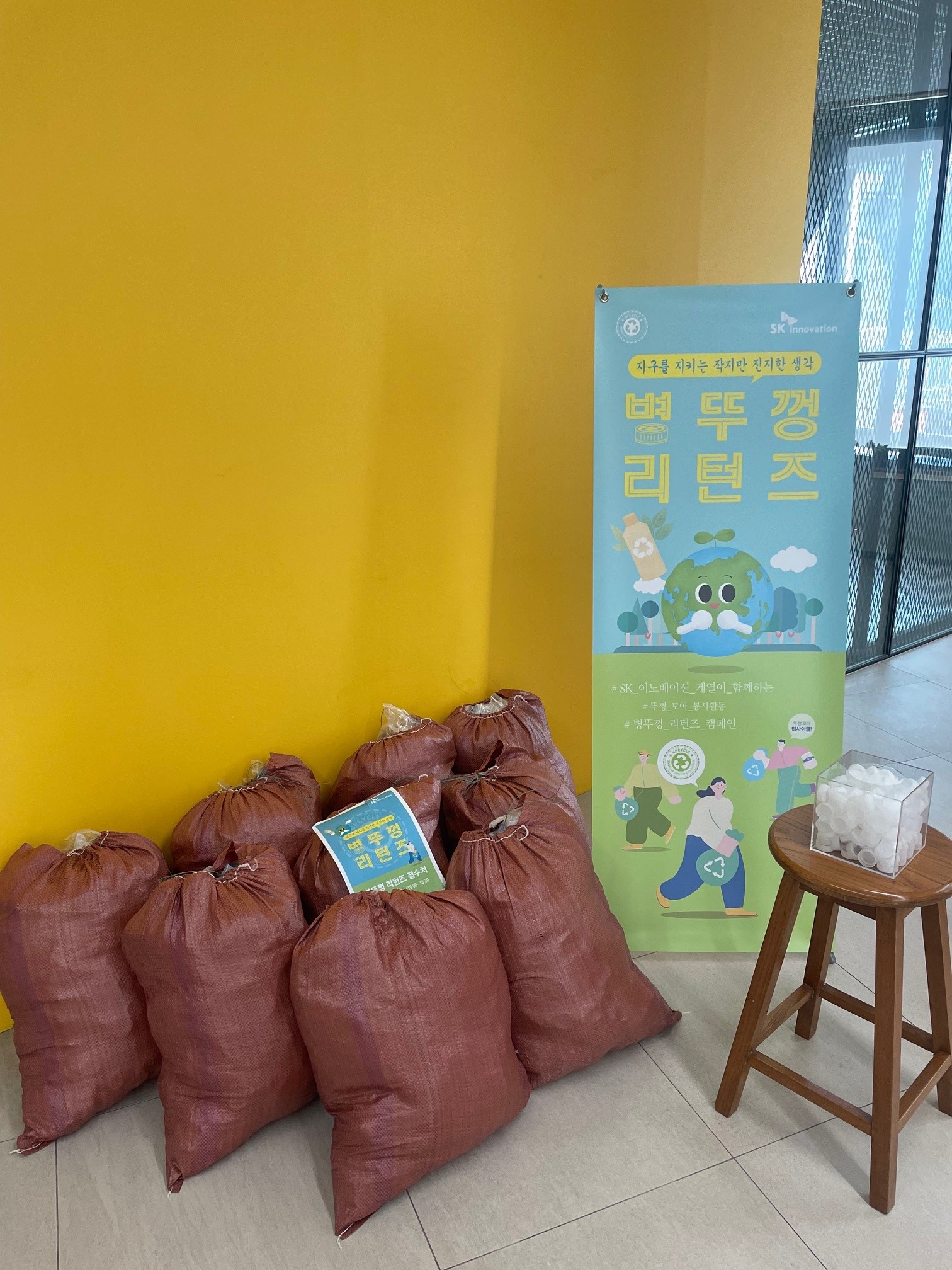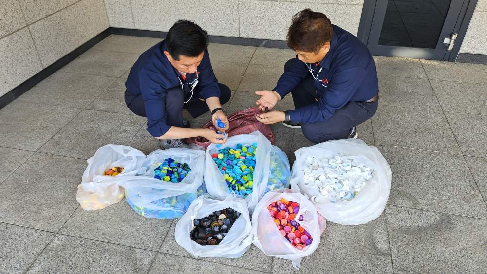 (사진1) SK이노베이션 계열 구성원들이 수집한 병뚜껑 모습