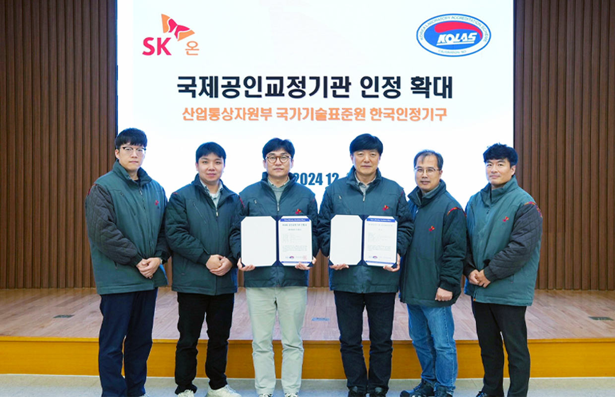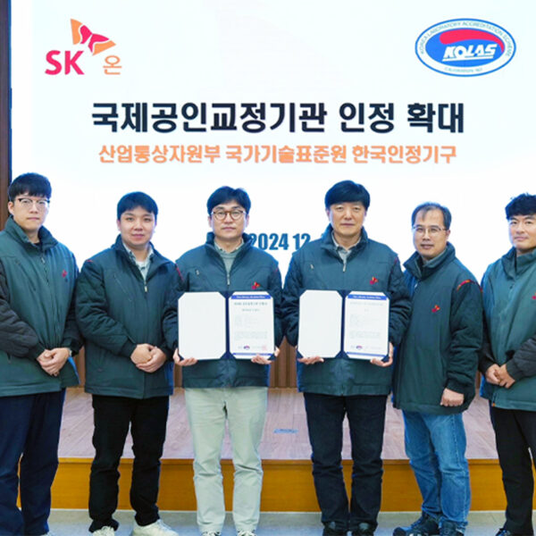 SK온은 4년 전 최초 인정 획득 이후 금번 실시된 첫 갱신 심사에서 우수 품질 검증 역량을 다시 한 번 입증했다. 이번에 SK온이 인정받은 국제공인교정기관은 측정 장비의 정확도와 신뢰성을 보장하기 위해 국제 표준에 따라 교정서비스를 제공할 수 있다.