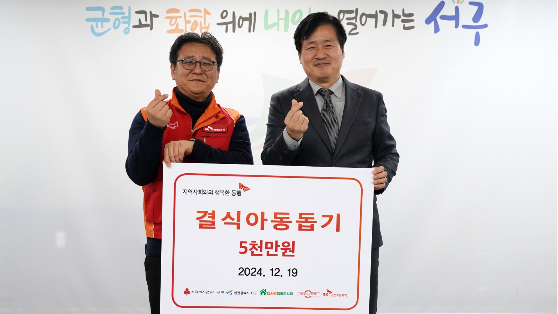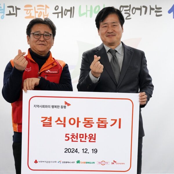 강범석 서구청장은 “SK인천석유화학 구성원의 온정이 전해져 저소득층 아동들이 따뜻한 겨울을 보낼 수 있을 것 같다”라며 “활발한 사회공헌 활동으로 지역사회 나눔 문화 확산에 앞장서 주셔서 감사하다”라고 말했다.