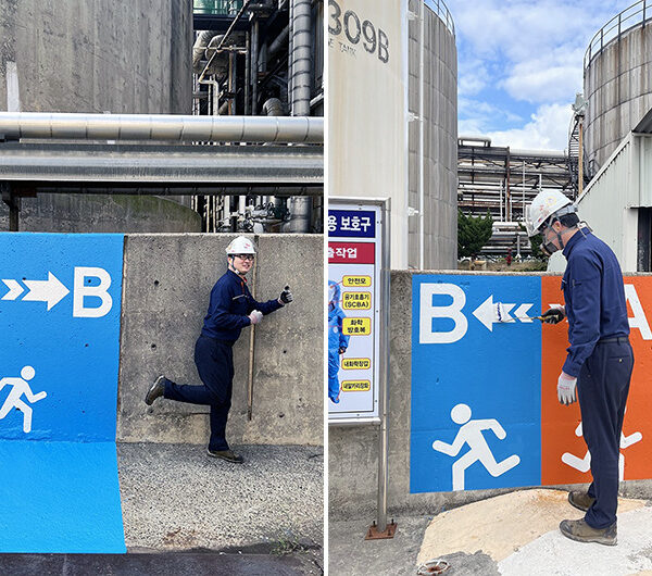 이 중 고온∙고압으로 운전되는 울산CLX의 동력공장은 정유∙석유화학 공장 운전에 필요한 스팀을 생산 및 공급하며, 배관 등 구조물이 많아 안전디자인/안전색채 도입 효과를 검증하기에 적합하다. 이에 울산CLX는 2024년 9월부터 현장 구성원들의 의견을 취합하고, 전문가들의 현장 진단을 기반으로 적용가능한 맞춤형 디자인을 개발했다. 이를 바탕으로 지난해 11월부터 동력공장의 이동통로, 대피로, 계단, 경계석 등에 안전디자인과 안전색채를 우선 적용했다.