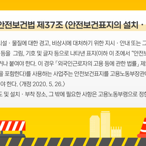 대한민국 산업안전보건법 37조에 따르면 안전보건표지는 산업현장에서 근로자의 안전과 건강을 지키기 위해 설치하는 표지를 말한다. 이는 작업장에서 발생할 수 있는 위험 상황이나 물질 등 위험 요소에 대한 경고를 시각적으로 명확히 전달하며, 특히 중대재해가 일어날 수 있는 장소에 부착해 근로자들의 적절한 대응을 돕는다.