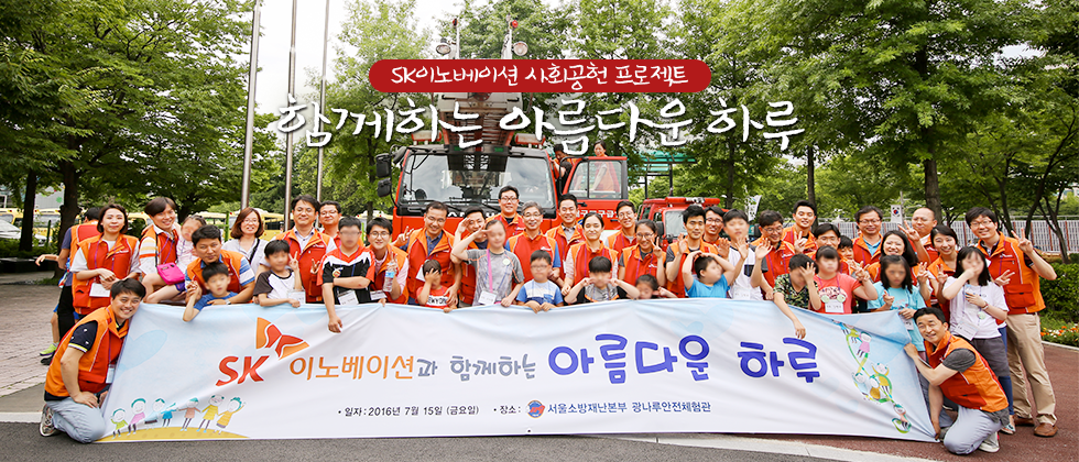 지난주, SK이노베이션 임직원들이 무더위와 장마를 헤치고 다운복지관 아이들과 함께 서울소방재난본부 광나루 안전체험관을 방문했습니다. 바로 SK이노베이션 사회공헌 프로젝트 ‘함께하는 아름다운 하루’를 보내기 위해서였는데요! SK이노베이션 임직원과 다운복지관 친구들이 함께한 아름다운 하루를 만나보러 가실까요? ^^