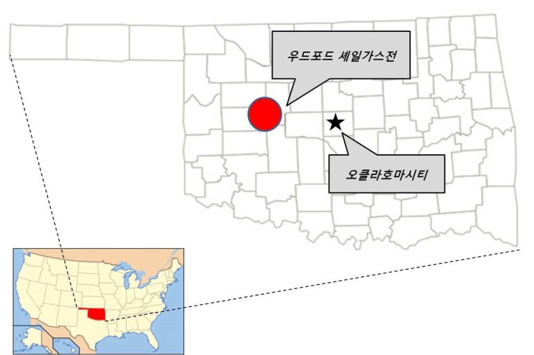 SK E&S가 지분을 인수한 우드포드(Woodford) 셰일가스전은 미국 오클라호마州 북동부에 위치해 있으며 약 7,600만톤의 천연가스가 매장되어 있는 것으로 평가된다. 부지 규모는 약 182㎢(약 5,510만 평)에 달한다.
