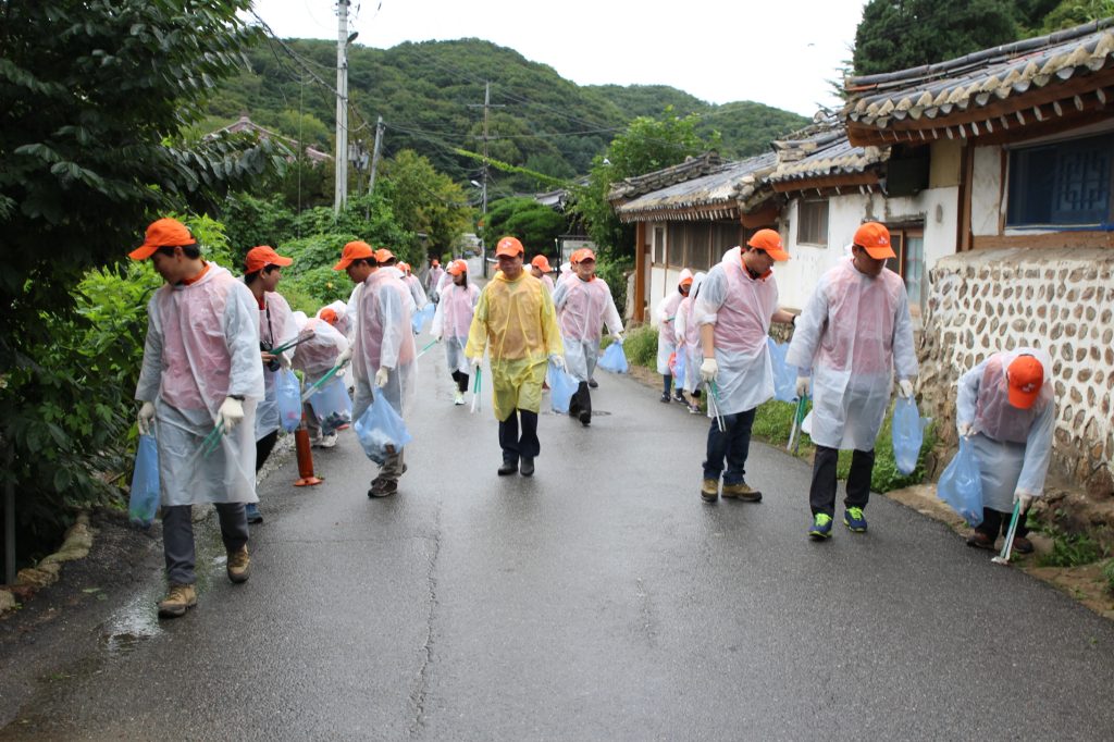 <사진> SK E&S, 하남에너지서비스, 위례에너지서비스 임직원들이 유네스코 문화유산으로 등재된 남한산성 일대에서 환경정화를 하고 있다.