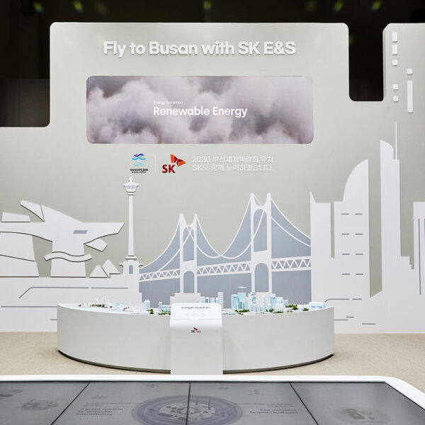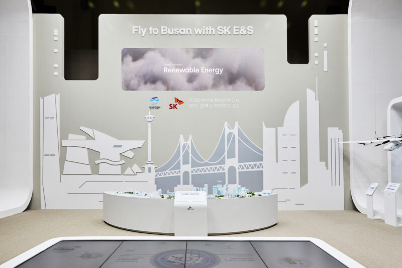 금년 SK E&S는 2030 부산 엑스포의 성공적인 유치를 기원하며 ‘Fly to Busan with SK E&S’라는 콘셉트로 전시에 참여합니다. 전시관에서는 수소 드론이 상용화된 청정수소 도시 부산의 미래 모습을 보여줍니다.