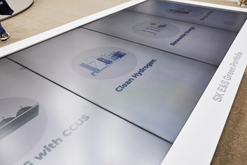 SK E&S의 그린포트폴리오 즉, 4대 핵심사업인 청정수소, 저탄소 LNG, 재생에너지, 에너지 솔루션을 소개하고, 이들 간의 시너지에 대한 이야기를 담고 있는 대형 모니터 또한 전시관에서 놓칠 수 없는 관람 거리입니다.