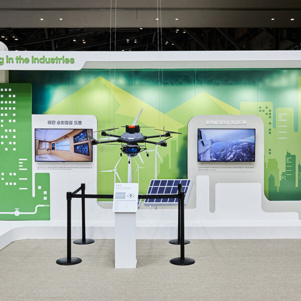 오른쪽으로 시선을 옮기면 실제로 드론이 산업 현장에서 사용되는 모습을 볼 수 있습니다. 도시가스 배관과 풍력발전 단지 시설물을 드론으로 점검하는 영상도 함께 자리합니다. 드론으로 도시가스 배관을 점검하면 차량 점검 대비 약 50%의 소요 시간 절감 효과가 있습니다. 또한 차량으로 접근하기 어렵거나 사람이 직접 확인하기 위험한 시설물 점검에 드론을 이용하면 훨씬 안전한 점검이 가능합니다.