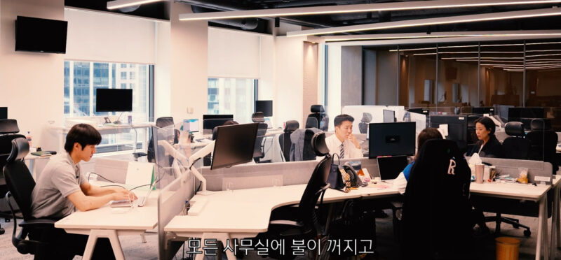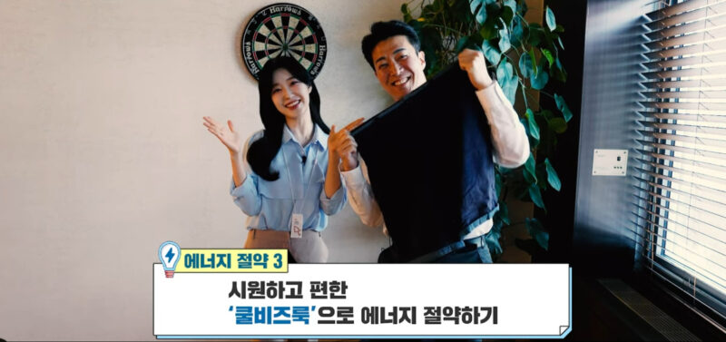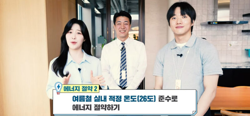 A: 호러물을 연상케 하는 도입부를 시작으로 ‘우리 회사에서 벌어진 일들’을 총 3개의 에피소드로 나눠 소개하고 있습니다. 첫 번째는 저희가 12시가 되면 자동으로 실내 불이 다 꺼집니다. 점심시간도 사수하고 에너지 절약도 할 수 있지요. 두 번째로는 국가에서 지정한 대형 건물의 여름철 온도 26도를 철저히 지키고 있다는 메시지를 전하고 있습니다. 또, 쿨비즈 즉 반바지나 반소매 등 편한 옷을 시원하게 입을 수 있는 사내 오피스 분위기도 담고 있습니다.