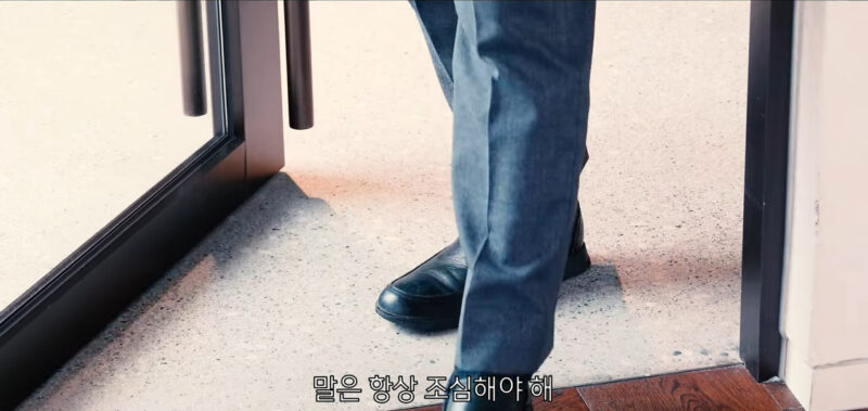 일하다 휴식 중인 두 사람, 더위에 지쳐 보입니다.“올여름도 무지하게 덥구먼”이때 한 남자가 문을 열고 들어옵니다.
