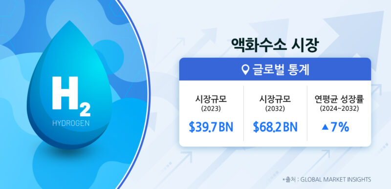 에너지, 화학 등 다양한 분야의 글로벌 시장 조사에 참여하는 리서치 전문 업체 Global Market Insights는 액화수소의 시장 규모가 2023년 379억 달러를 넘어섰고, 2024년부터 2032년까지 7%의 연평균 성장률(CAGR)을 기록할 것으로 분석합니다.