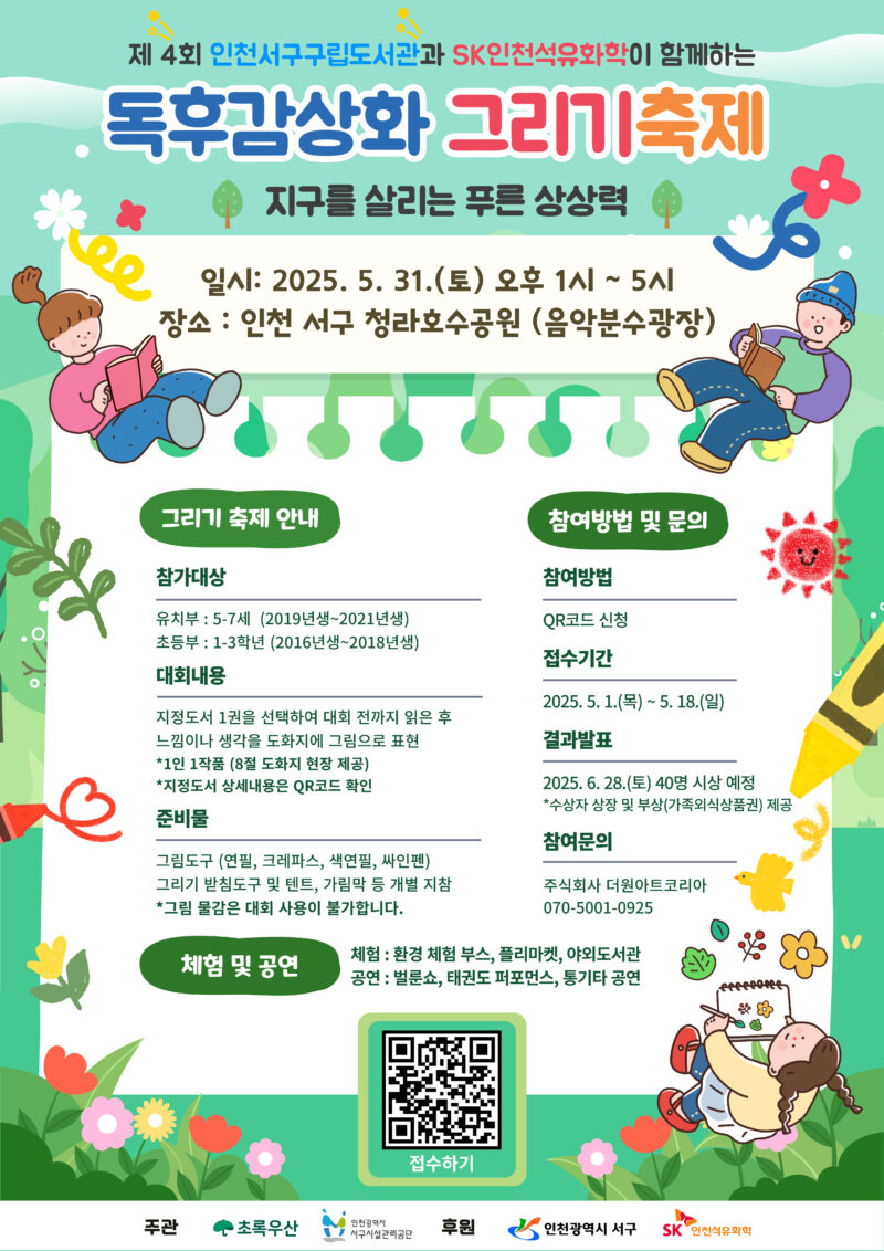 제4회 친환경 독후감상화 그리기 축제가 오는 31일 오후 1시 인천 서구청라호수공원 음악분수광장에서 개최된다.