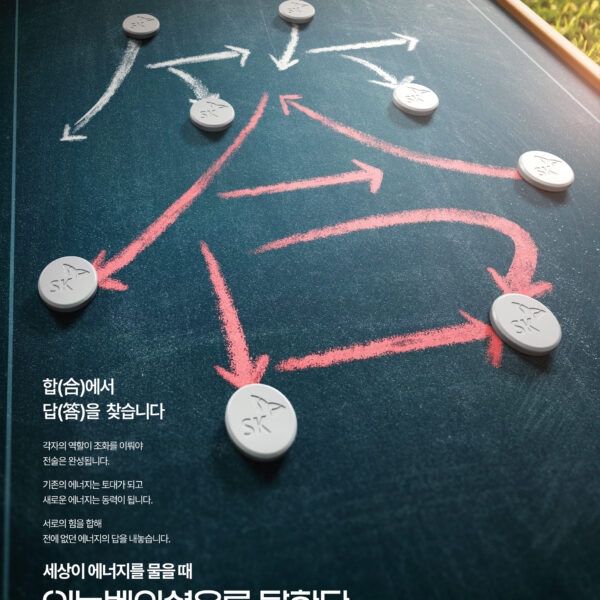 “합에서 답을 찾습니다. (중략) 서로의 힘을 합해 전에 없던 에너지의 답을 내놓습니다”는 광고 문구는 SK이노베이션이 보유한 다양한 사업 포트폴리오가 각기 역할을 하면서도 힘을 모아 시너지를 창출하고, ‘원 팀’ 정신으로 해답을 만들어간다는 뜻을 표현했다.
