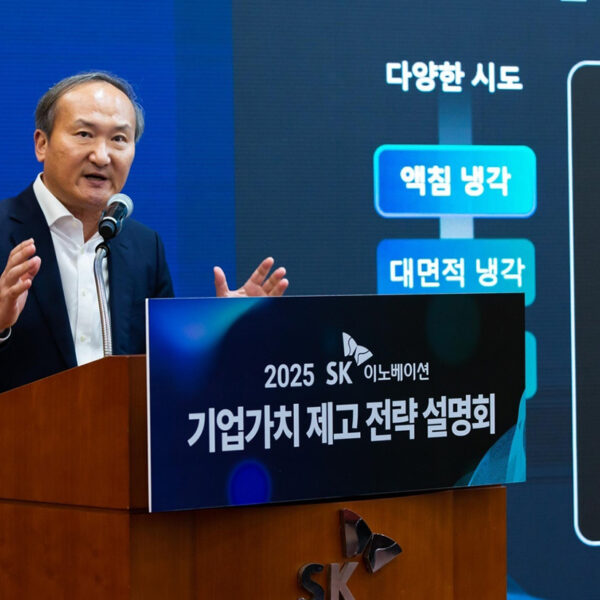 (사진3) 이석희 SK온 사장이 30일 서울 종로구 SK서린빌딩 수펙스홀에서 열린 ‘2025 SK이노베이션 기업가치 제고 전략 설명회’에서 SK온 성장 스토리에 대해 발표하고 있다.