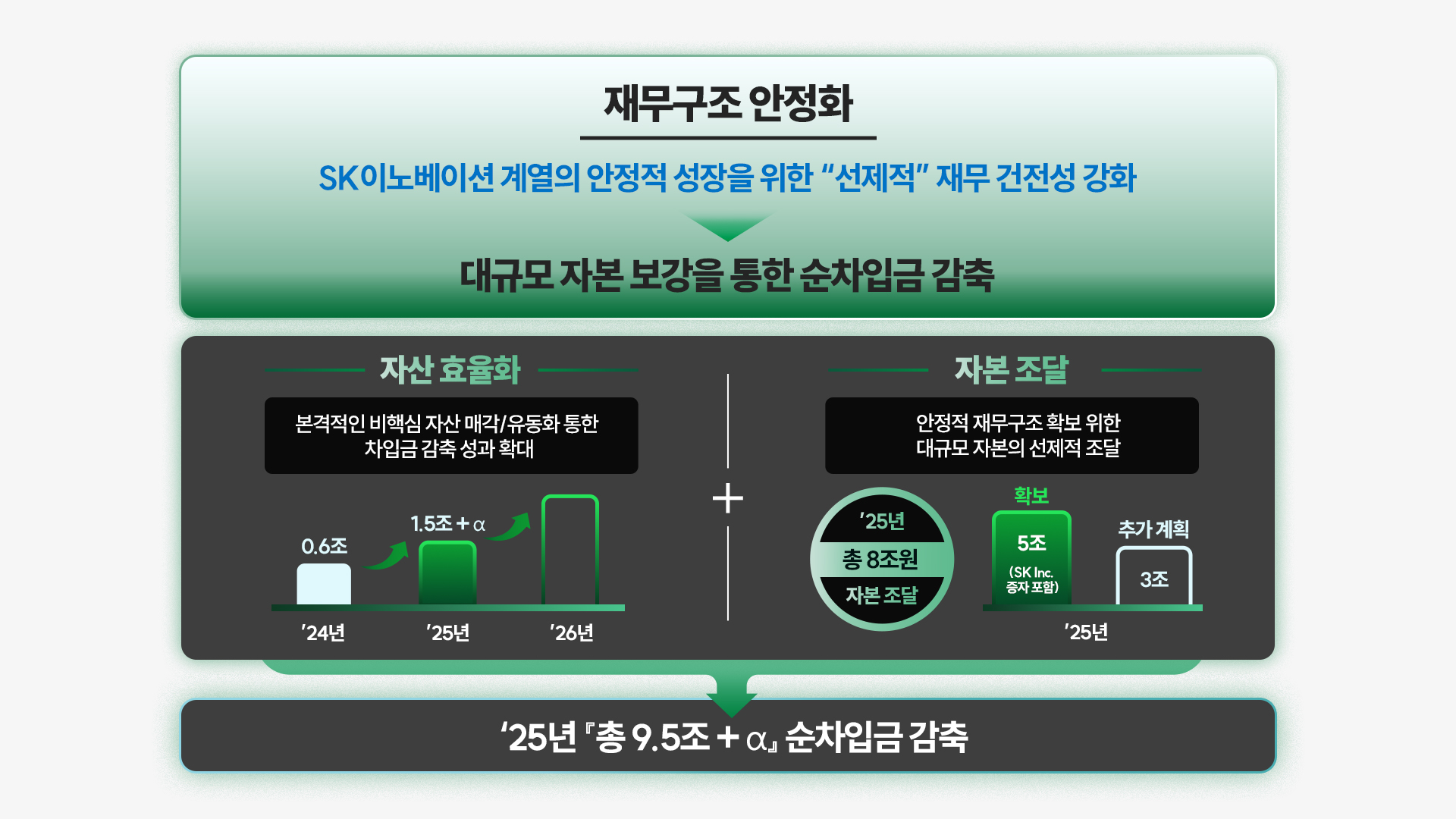 SK이노베이션은 대규모 자본확충으로 순차입금을 크게 줄이는 선제적 재무건전성 강화에 나선다.