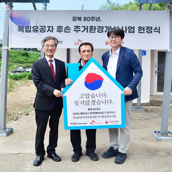 이번 주거환경 개선사업은 SK이노베이션 구성원이 사내 게시판에 글을 올리고, 광복 80주년의 뜻을 기리자는 구성원들의 댓글이 이어지면서 본격적으로 추진됐다. 총 사업비 1억원 은 구성원들이 급여의 1%를 모아 조성한 ‘1% 행복나눔기금’을 활용한다.