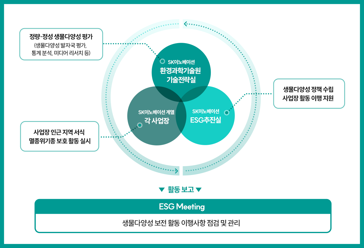 SK이노베이션의 생물다양성 평가 기법은 회사가 올해 6월 발간한 2024년 지속가능경영보고서의 생물다양성 항목에 곧장 활용됐다. 우선 SK이노베이션 계열의 R&D를 책임지는 환경과학기술원, 계열 회사들의 각 사업장, ESG추진실이 삼위일체가 되었다. 이들은 국제 표준, 국가 생물다양성 정보체계, 사업장 환경 등을 종합적으로 파악하고 그 결과물들을 자체 개발 모델에 적용했다. 이를 통해 사업장 및 인접 생태계의 영향을 정성·정량적으로 산출하고 그 결과가 보고서에 담겼다. 과거의 내용보다 한층 더 피부에 와 닿는 내용일 수밖에 없었음은 불문가지다. SK이노베이션은 이러한 자체 평가모델이 이해관계자들에게 생태계 보전에 대한 책임과 성과를 명확히 전달하고 인근 지역사회와의 안정적 관계를 구축하는 데 도움이 될 것으로 전망하고 있다.
