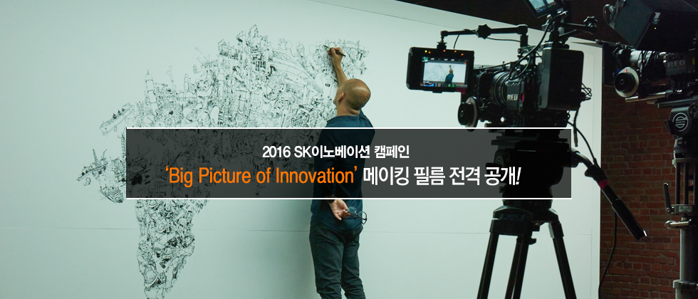 세계적인 드로잉 아티스트 김정기 작가와 콜라보 작업으로 더욱 주목을 받은 2016 SK이노베이션 신규 캠페인, Big Picture of Innovation! 이번엔 보는 이마저 숨죽이게 만드는 메이킹 필름이 전격 공개되었다고 합니다. 실제 광고 영상에선 볼 수 없었던 생생한 촬영 현장과 어디에서도 답을 찾을 수 없었던 아~주 사소한 궁금증까지. 지금 바로 확인하세요!
