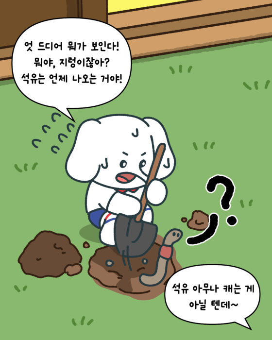 ‘석유 헌터’로서의 화려한 데뷔를 꿈꾸며 무작정 땅을 파기 시작한 행코! 과연 행코는 석유 시추에 성공했을까요?