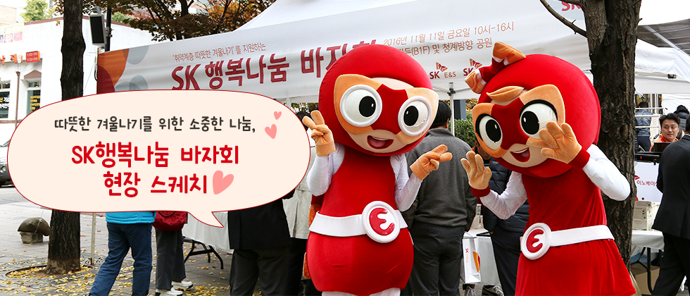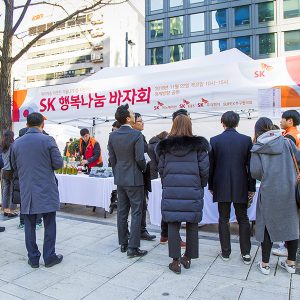 지난주 금요일, 이른 시간부터 SK본사(서린빌딩) 앞 청계천 주변이 임직원들로 시끌벅적했습니다. SK행복나눔 바자회가 펼쳐졌기 때문인데요. SK행복나눔 바자회는 매년 SK에서 진행하는 사회공헌의 일환으로, 취약계층을 위해 따뜻한 겨울나기를 지원하는 행사랍니다.