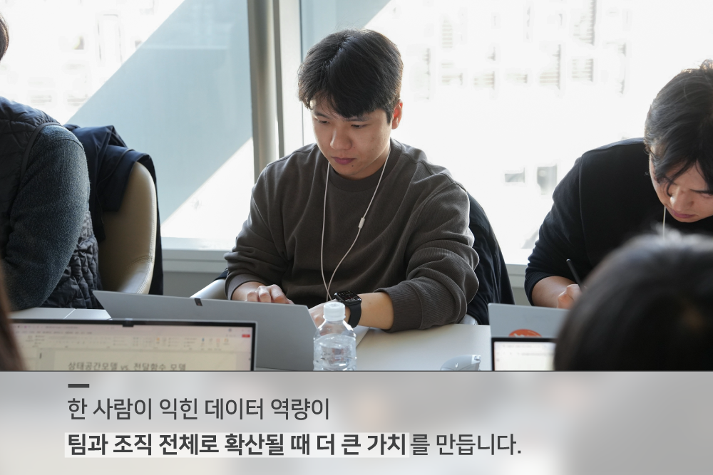 데이터 역량은 특정 부서만이 아니라, 구성원 모두가 함께 키워야 하는 공통 역량입니다. 어떤 조직에서도 인정받을 수 있는 옴니유즈(omni-use) 역량2)인 것이죠. 이는 개인 성장뿐 아니라 조직 경쟁력을 높이는 가장 확실한 수단입니다. 이 교육이 구성원 개인에게는 탄탄한 성장 자산이 되고, SK온에게는 차세대 배터리 시장에서 우위를 확보할 수 있는 중요한 기반이 되길 바랍니다.