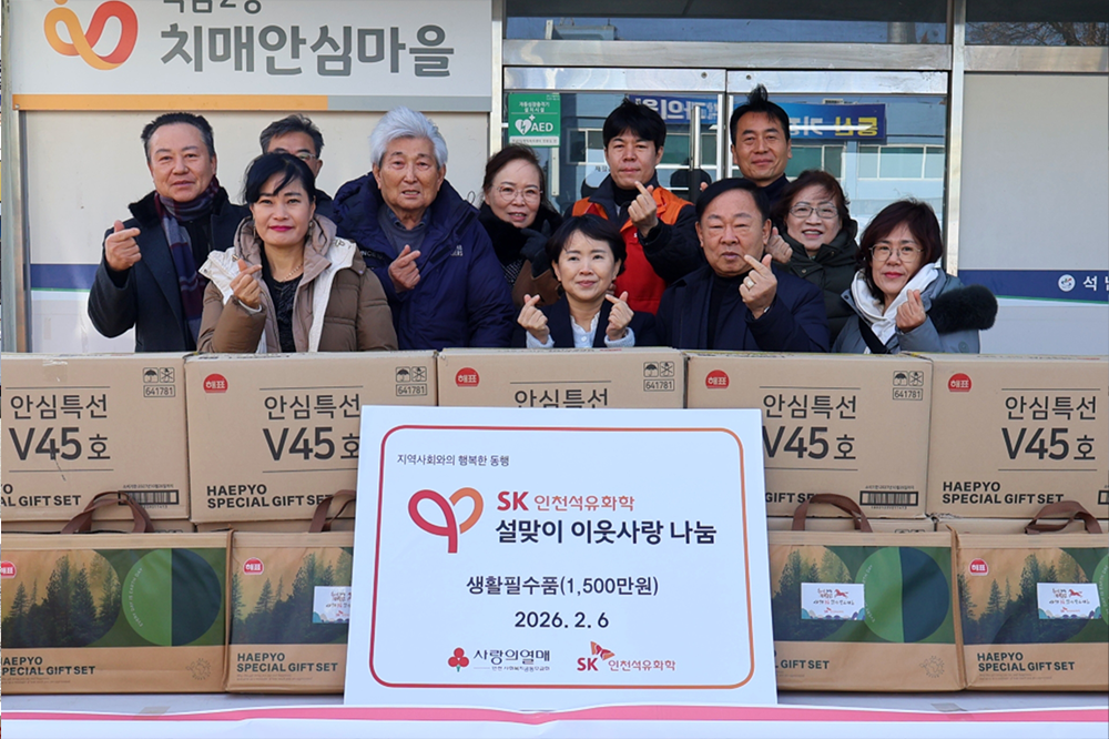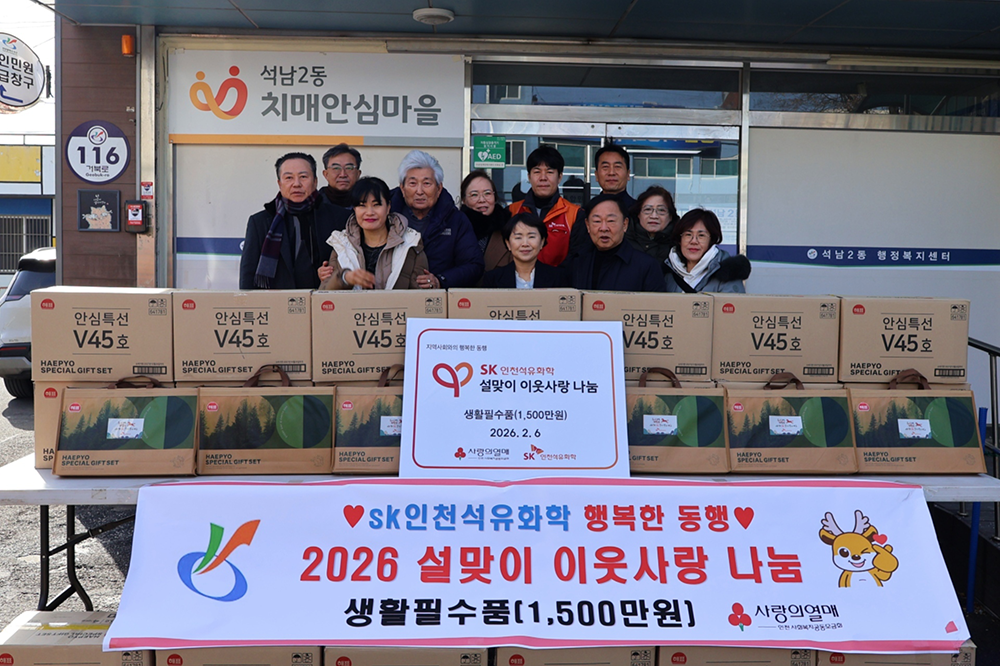 SK인천석유화학은 6일 인천 서구 석남2동 행정복지센터에서 설 맞이 이웃사랑 나눔 전달식을 열고, 1500만원 상당의 생필품을 기부했다.