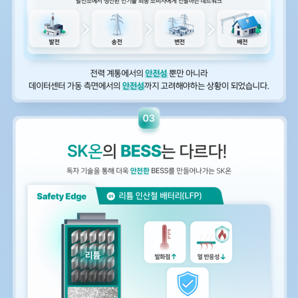 특히 AI 데이터센터의 전력 수요가 급증하면서, 도심이나 좁은 부지에도 설치할 수 있고 반응 속도가 매우 빠른 BESS가 차세대 에너지 저장 인프라로 부상하고 있습니다.