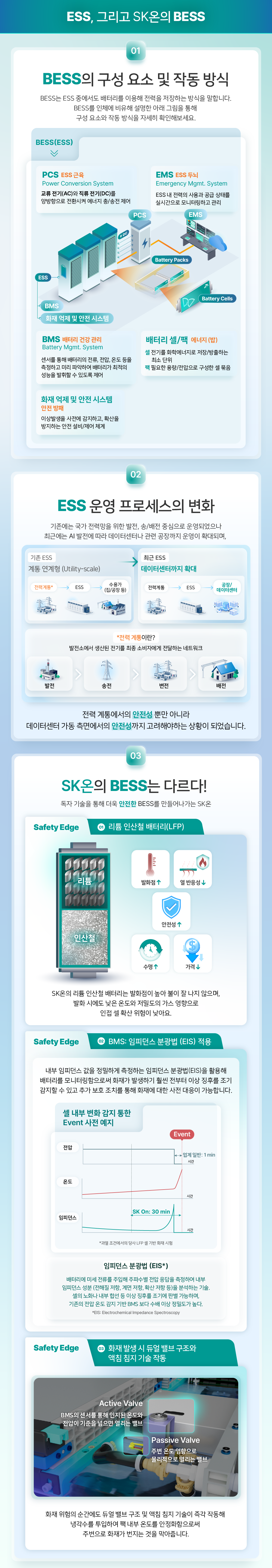 SK온은 BESS의 안전성과 신뢰성을 강화하기 위해 바나듐 이온 배터리 같은 차세대 배터리 기술 연구를 지속하고 있습니다. 변화하는 에너지 환경 속에서 보다 안전하고 지속 가능한 ESS 설루션을 구현하기 위한 SK온의 여정은 앞으로도 계속될 예정입니다.
