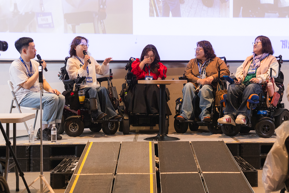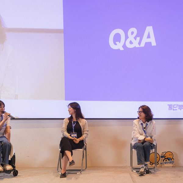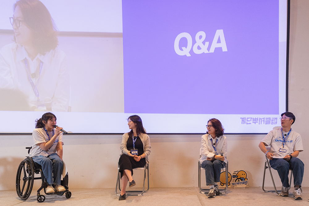 함께 패널로 참여한 계단뿌셔클럽의 크루인 진영채 씨는 직접 크루 활동에 뛰어들게 된 계기를, 여지나 씨는 나이가 들면서 달라지는 일상을 말하는 등 각자의 경험을 바탕으로 이동약자의 접근성과 사회적 공감의 필요성에 대해 전했다.