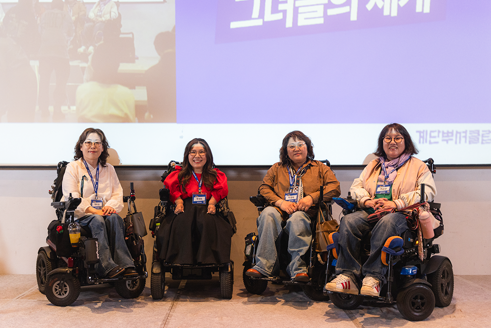 뒤이은 두 번째 토크 콘서트 ‘우정으로 넓힌 그녀들의 세계’에서는 전동 휠체어로 전국을 여행해 온 네 명의 패널이 무대에 올랐다. 바로 무(無)장애 여행 문화 확산에 앞장서고 있는 전윤선, 이경희, 차미경, 하석미 작가다. 그들은 매달 함께 여행을 떠나며 끈끈한 우정으로 접근성 장벽을 넘어온 이야기를 현실감 가득히 전했다. 여행이라기보다 모험에 가까웠던 순간들을 생생하게 들려주며, 높은 계단과 문턱, 부족한 화장실 정보, 이동 동선의 제약 등이 여전히 여행의 큰 장벽으로 남아 있음을 이야기했다.