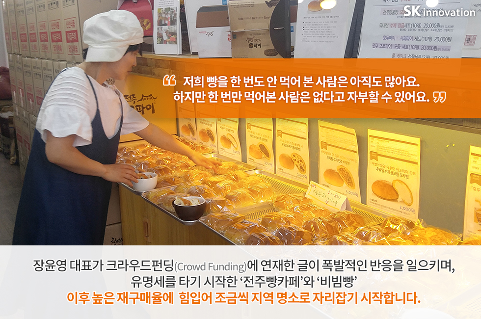 어느덧 전주의 명소가 된 ‘전주빵카페’가 지금에 이르기까지는 장윤영 대표와 직원들의 끊임없는 노력이 있었기에 가능했는데요. 앞으로도 계속될 ‘전주빵카페’의 따뜻한 발걸음! SK이노베이션과 함께 응원 부탁 드려요.