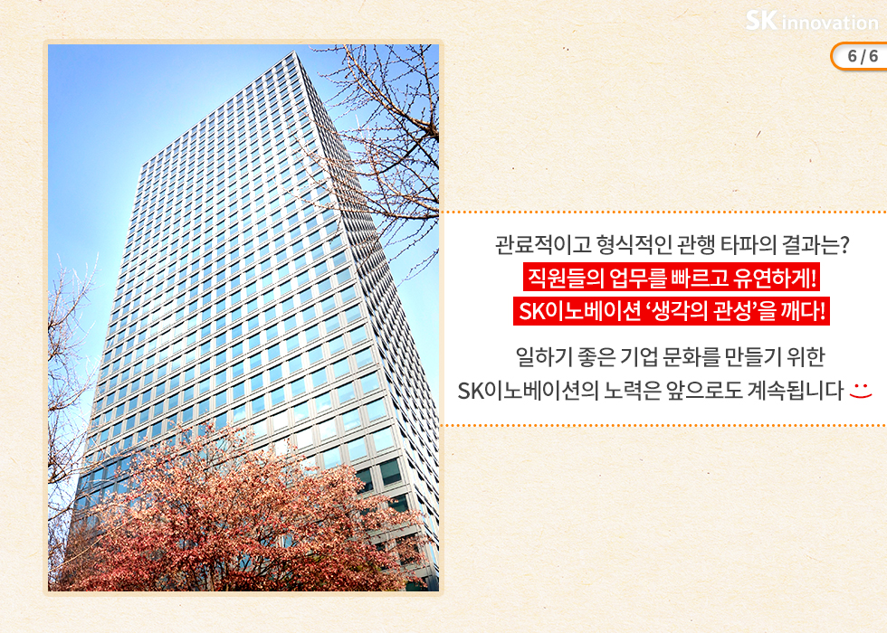 SK이노베이션은 ‘Innovation’이라는 사명에 걸맞게 관습적으로 해오던 기존의 사고방식을 벗어나 효율적으로 일할 수 있는 환경을 만들기 위해 노력하고 있는데요!