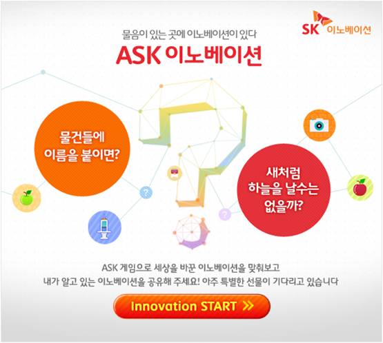 치열했던 홍보 아이디어를 넘어 제2회 아이디어 페스티벌은 ‘더 나은 미래를 위한 이노베이션 아이디어를 찾습니다.’ 주제로 진행됐습니다. 에너지, 환경, 사회 공익 등 다양한 분야의 혁신 아이디어를 찾으러 나섰습니다. 이번엔 젊은 층과의 접점을 늘리기 위해 온라인 게임을 새롭게 선보이기도 했는데요, ‘질문이 있는 곳에 이노베이션이 있다’라는 주제로 진행된 ASK게임에 참여하기 위해 공모전 홈페이지에는 약 30만 명의 사람들이 방문하기도 했습니다.