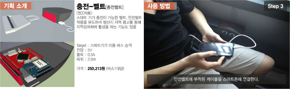 아이디어를 가진 청년을 대상으로 진행한 2회 공모전에는 이전보다 참여 인원이 30%나 증가했는데요, 총 617팀 1,238명이 참여하며 각양각색의 ‘더 나은 미래를 위한 아이디어’를 제시했습니다. SNS와 인터넷을 통해 일반 네티즌 등이 공감투표와 레이디 대표이사 김현진, 베스트셀러 ‘스토리가 스펙을 이긴다’의 저자 김정태 이사, 소셜 벤처 트리플래닛 김형수 대표 등의 전문가들의 심사를 거쳐 총 13개 팀을 선정했는데요, 영예의 최우수 이노베이터에는 ‘버스배터리의 폐에너지를 이용한 충전 벨트’를 제시한 ‘TaSK’가 수상했습니다.