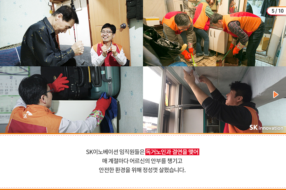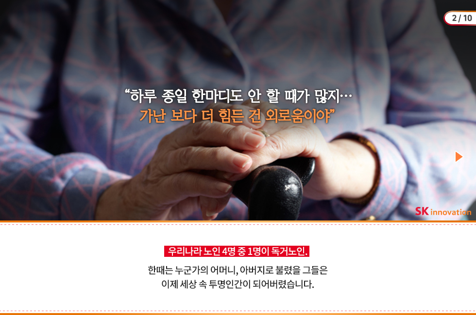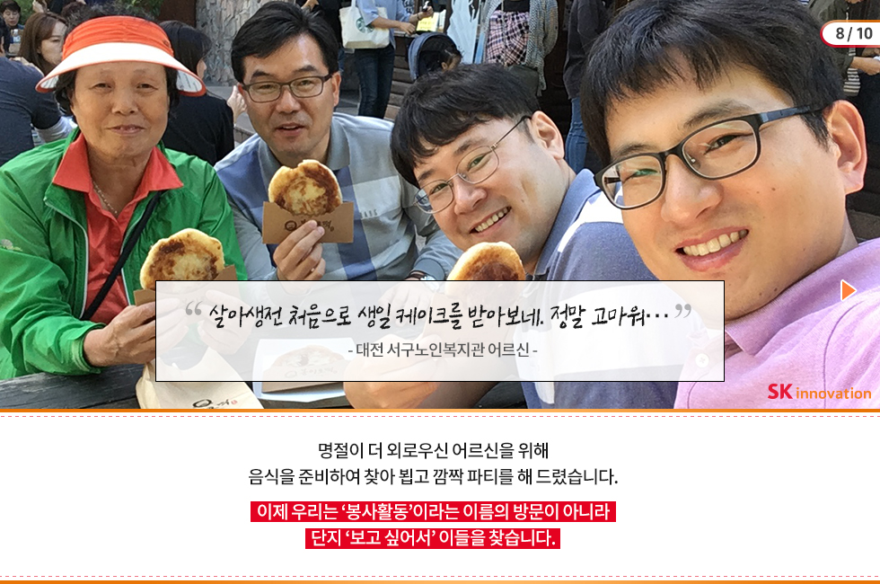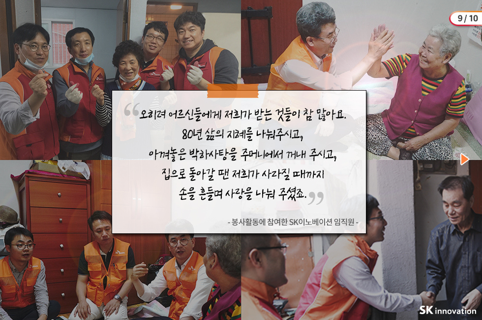 지난 2016년부터 임직원 자원봉사활동의 중점 테마를 ‘독거노인’과 ‘발달장애 아동’으로 선정하고 봉사활동을 꾸준히 펼쳐 온 SK이노베이션도 카드뉴스를 만들어 참여했답니다 🙂