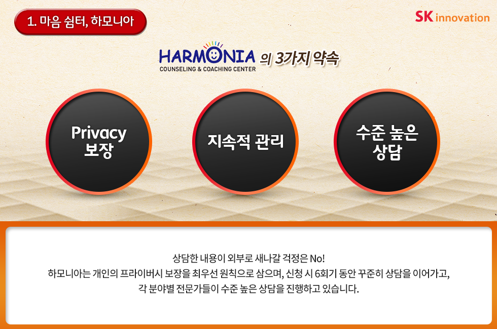 마음의 쉼터 하모니아부터, 휴식과 재충전을 통해 업무 효율을 높이는 경영자료실, 그리고 심신의 건강을 책임지는 심기신수련까지!