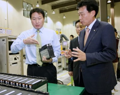 특히, 배터리 생산라인에서는 최 회장이 직접 방진복을 입고 현장에 들어가 SK이노베이션의 배터리 생산 기술에 대해 보고를 받는 한편, 생산된 배터리 제품을 일일이 점검하기도 했다. 이 곳에서 최 회장은 배터리 연구 인력들의 명함을 모아 만든 판넬에 “모든 자동차가 SK배터리로 달리는 그날까지 배터리 사업은 계속 달린다. 나도 같이 달리겠다”는 글을 남겨 SK이노베이션의 배터리 사업 추진에 대한 강한 의지를 보였다.