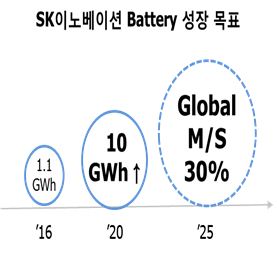 SK이노베이션은 전기차를 포함한 배터리 시장이 급성장 할 것으로 예상되는 만큼 적극적인 투자를 하기로 했다배터리 시장은 지난해 25GWh에서 2020 110GWh다시 2025년에는350~1,000GWh로 초고속 성장을 할 것으로 예상되고 있다.