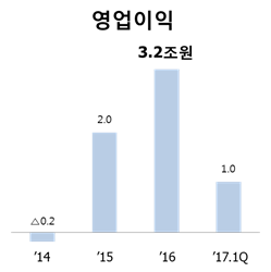 – ‘16년 사상최대 영업이익 이은 분기 1조원 돌파, 순차입금 1조원 미만으로 축소
