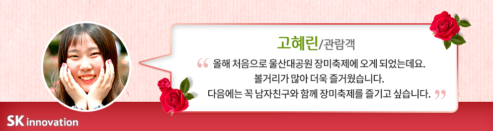 SK 울산Complex(이하 ‘SK 울산CLX’)와 울산광역시가 공동으로 주최∙주관하는 울산대공원 장미축제. 5월 18일부터 27일까지, 열흘간 진행된 제 12회 장미축제에는 약 27만명의 관람객들이 찾아 소중한 추억을 만들었는데요. 그 향기로운 추억의 한 켠을 SK이노베이션 블로그가 함께했습니다. 🙂