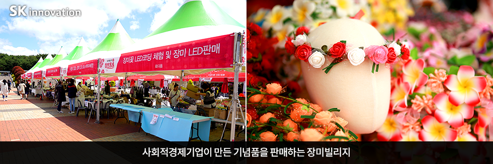 울산대공원 남문광장의 장미빌리지에는 울산 지역에 있는 사회적경제기업을 위한 부스도 마련되어 있었는데요. 장미와 관련된 다양한 체험과 상품 구매를 할 수 있는 장미빌리지를 사회적경제기업 부스로 구성함으로써, 사회적경제기업의 홍보와 제품 판매를 돕기 위함이었습니다.