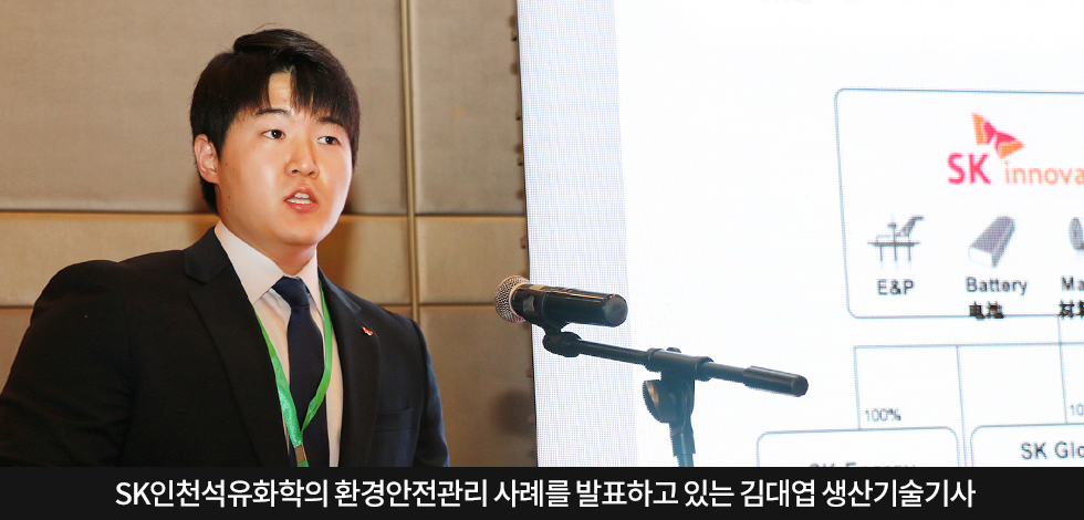 ‘환경 · 안전’ 경영을 최우선 과제로 두고 지역으로부터 신뢰받는 기업이 되기 위해 노력하는 SK인천석유화학! 포럼 이튿날인 6일, SK인천석유화학 생산기술팀의 김대엽 기사가 SK인천석유화학의 사례를 발표했습니다.