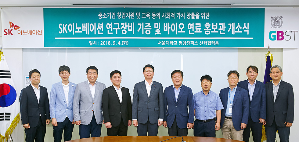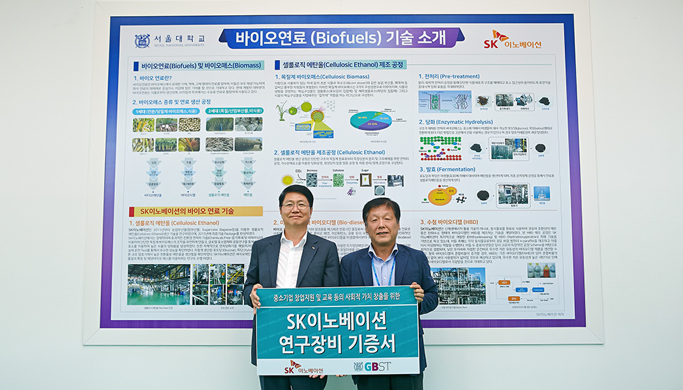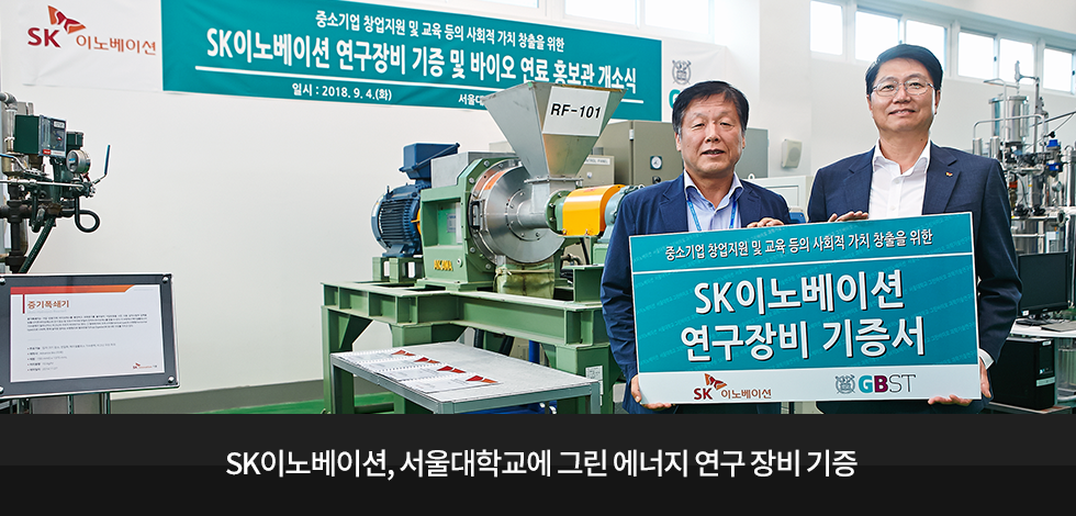 SK이노베이션이 전사 연구소인 기술혁신연구원이 보유하고 있던 바이오 연료 연구 장비를 서울대학교 평창캠퍼스 그린 바이오 과학기술연구원에 기증했습니다.