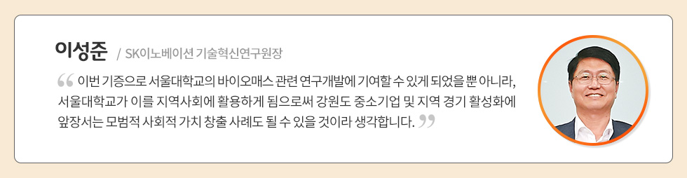서울대학교는 이번에 SK이노베이션이 기증한 장비로, 관련 연구를 진행하면서 강원지역 중소기업 기술사업화 및 바이오매스 전문인력 양성 교육에도 활용하는 등 사회적 가치도 창출하기로 결정했습니다.
