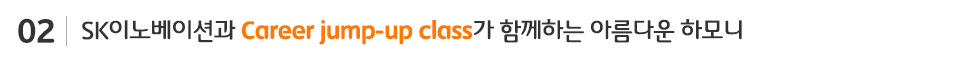 국내 최초로 진행되는 발달장애인 대상 전문 교육 프로그램인 Career Jump-up class(CJC)! SK이노베이션은 CJC뿐 아니라 발달장애인 음악 축제(GMF) 및 1% 행복나눔기금 후원사업 등 발달장애인의 자립을 위한 노력을 지속하고 있는데요. 앞으로도 발달장애인의 자립을 위해 다양하고 지속 가능한 사회공헌 활동을 펼칠 SK이노베이션의 행보를 지켜봐 주시길 바랍니다!